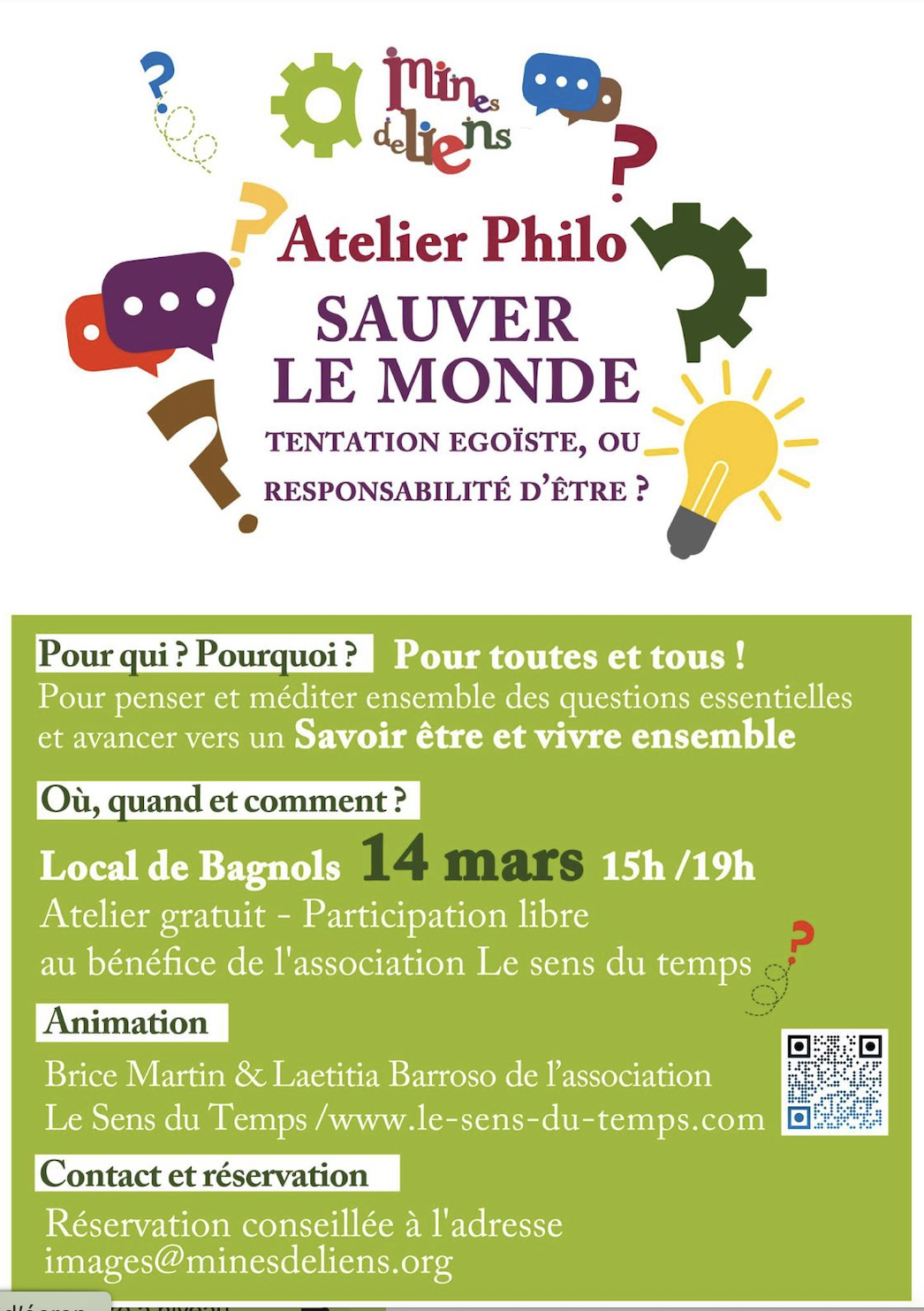 Brice et Laetitia, membres du collectif de l’association « le sens du temps », nous invitent aux ateliers philo de 2026.